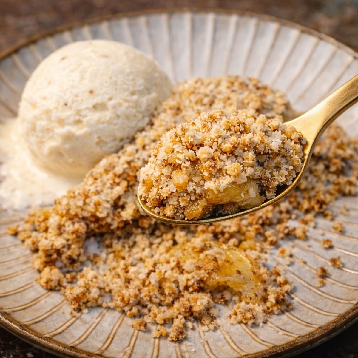 1. Sirva o crumble de tapioca sem trigo com frutas, sorvetes e outras sobremesas cremosas.