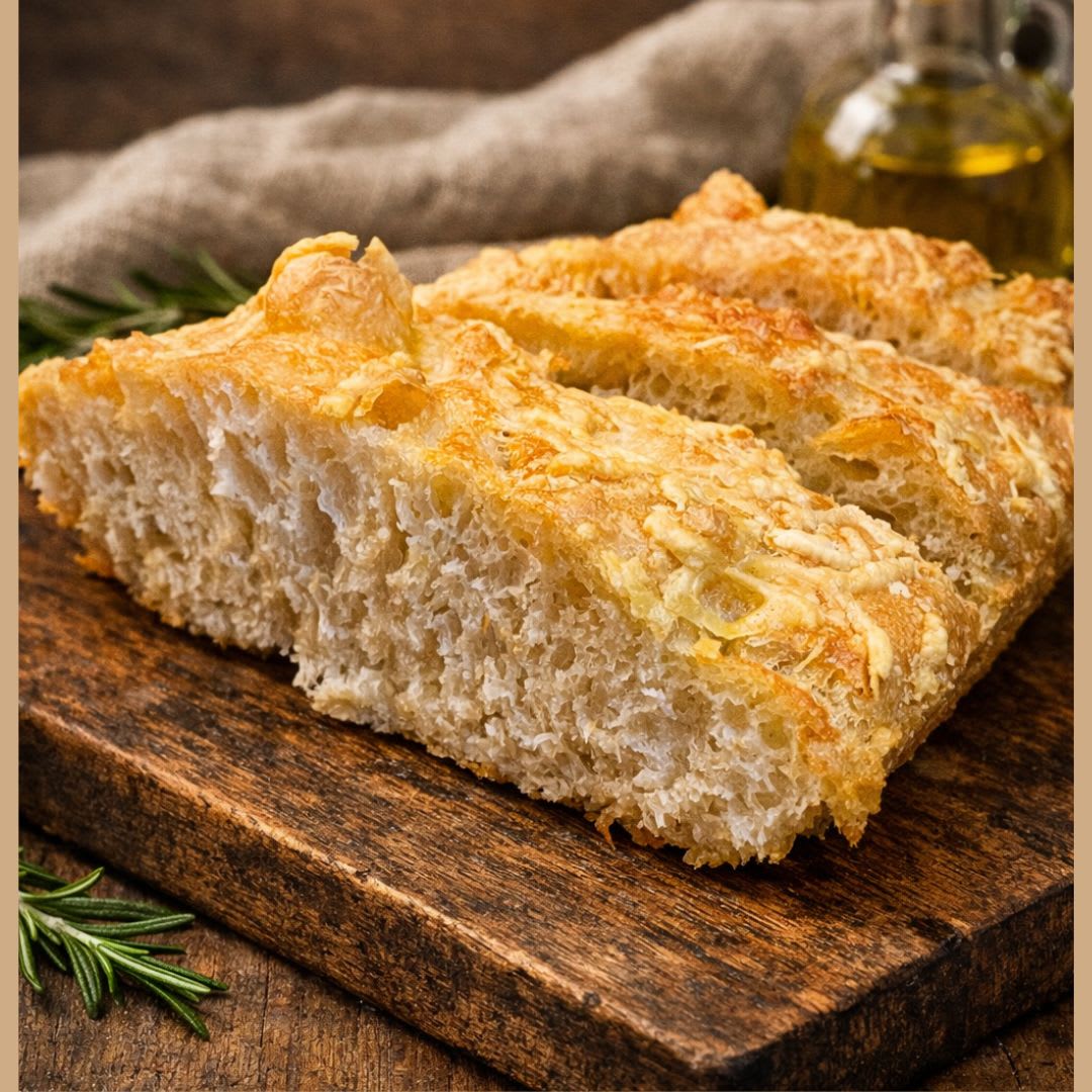 Focaccia sem sova com fermentação lenta e preparo fácil. Ideal para quem busca um pão artesanal leve, com fermentação lenta e sabor profundo.