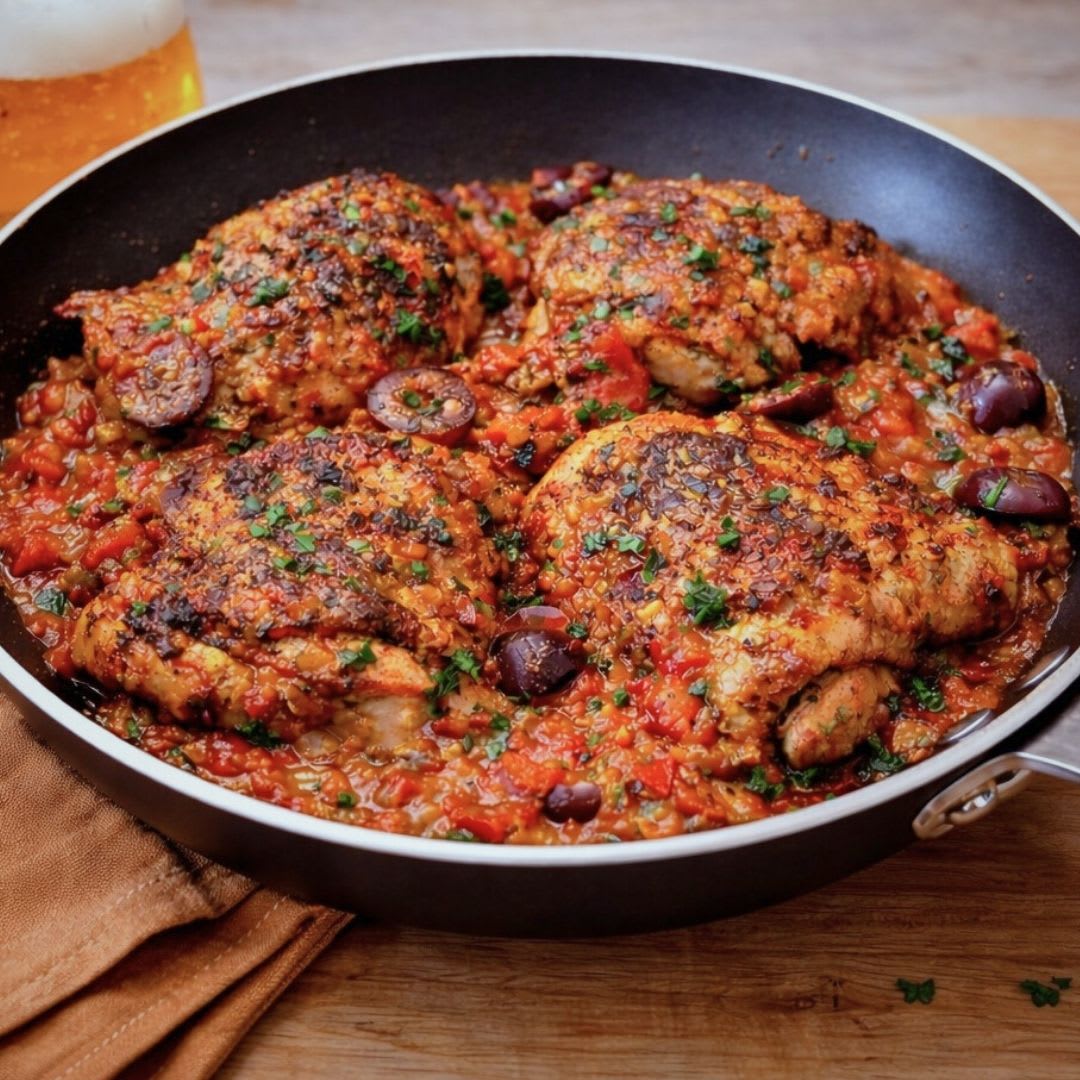 Receita de frango com cerveja na frigideira fácil, com sobrecoxas douradas, molho encorpado e muito sabor.