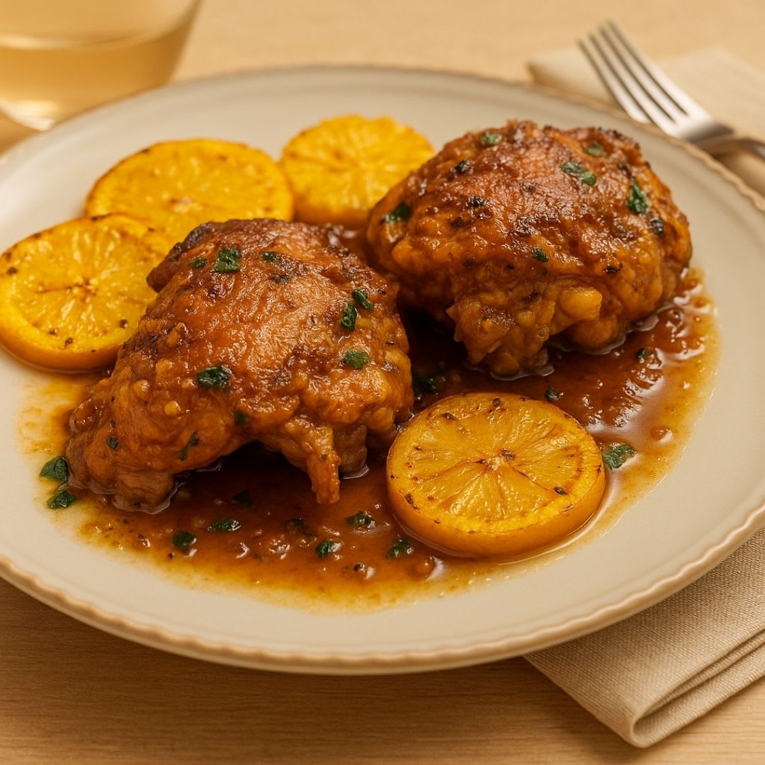 Frango fácil feito na frigideira com laranja e mel. Suculento, dourado e cheio de sabor.