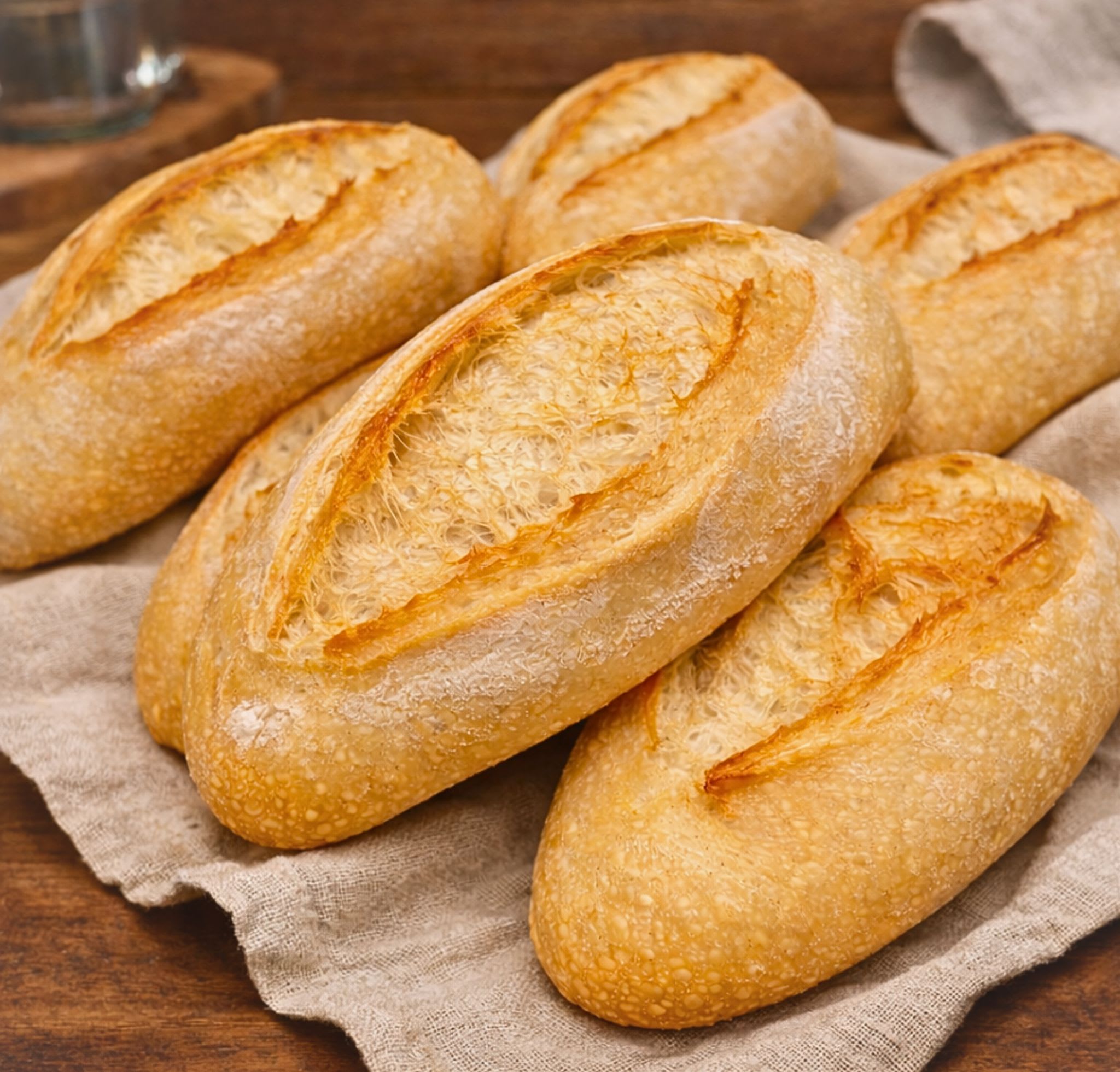 10. Para reaquecer e garantir a crosta crocante, umedeça levemente a superfície dos pães franceses e leve ao forno pré-aquecido 180°C por alguns minutos.