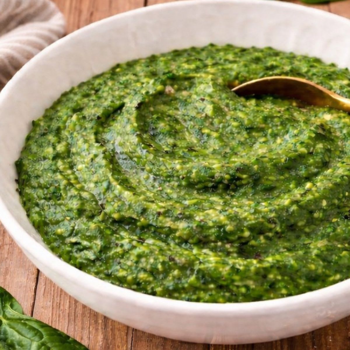 1. Transfira o purê de espinafre para uma travessa ou sirva diretamente nos pratos.