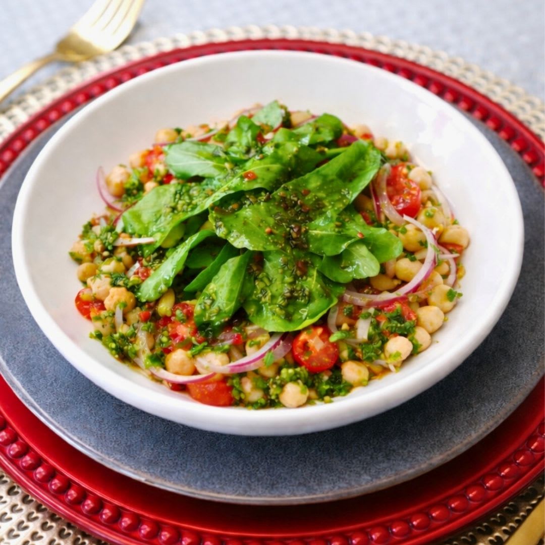 SALADA DE GRÃO-DE-BICO COM VINAGRETE DE HORTELÃ