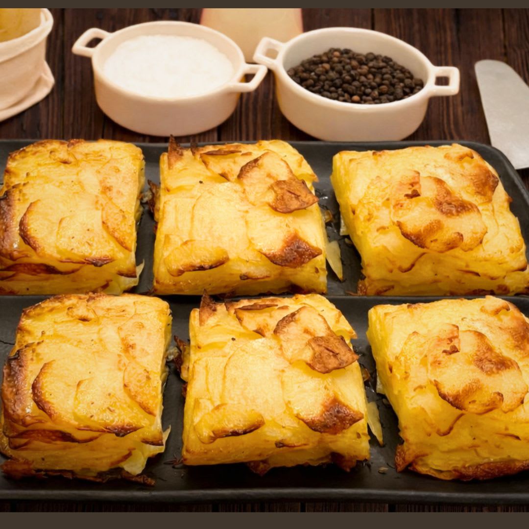 Um gratinado elegante com camadas finas de batata, creme e queijo — prático, saboroso e irresistível.