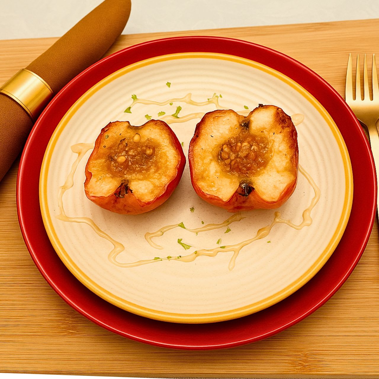 Sobremesa rápida de maçã assada na airfryer com mel e castanhas crocantes — leve e aromática