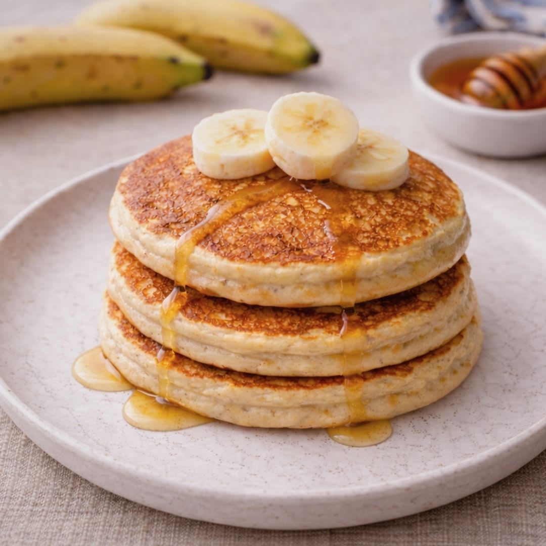 Panqueca americana de banana com aveia, sem glúten e sem farinha de trigo. Receita fácil, nutritiva e perfeita para o café da manhã ou lanche rápido.