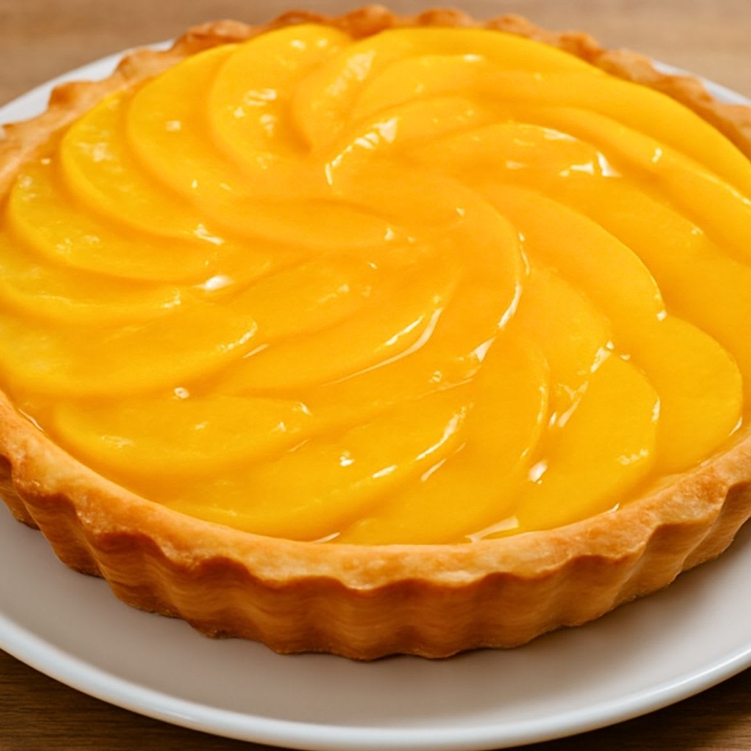Torta clássica com massa crocante, creme confeiteiro e cobertura espelhada com gelatina de brilho.