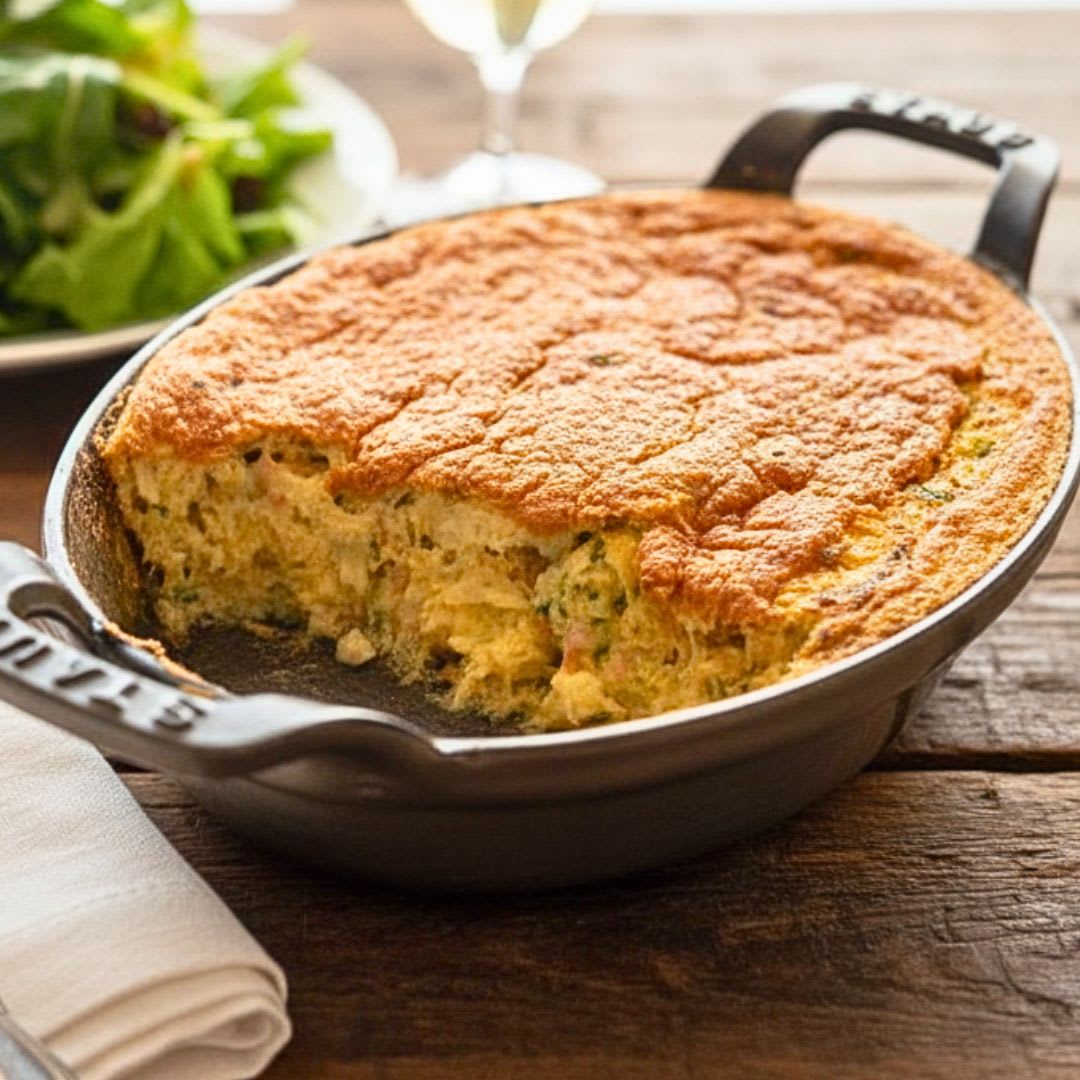 Um suflê de bacalhau leve, feito sem trigo - uma receita que rende bem, com muito sabor